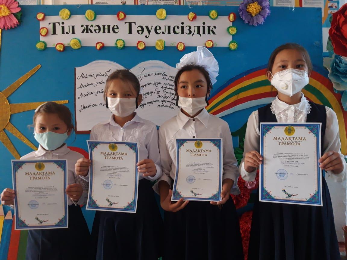 Ең әуелі «Тіл –баға жетпес байлығым!» тақырыбында сынып сағаттары өтіллді. Сонымен қатар «Өнер алды- қызыл тіл!» атты кітап көрмесі мен көркем сөз оқу шеберлерінің байқауы да ойдағдай өтті. Аталмыш байқау жеңімпаздары: