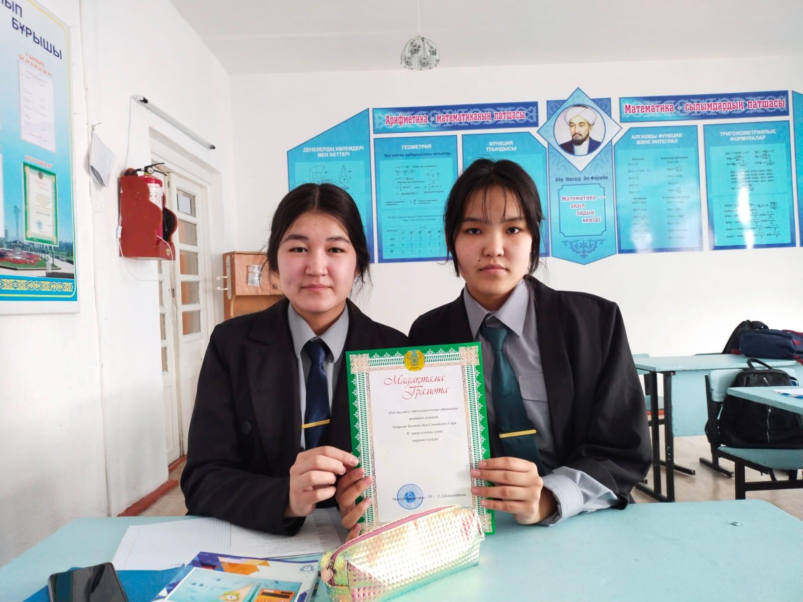 Гуманитарлық пәндер апталығы бойынша өткізілген, орыс тілі пәні мұғалімдерінің ұйымдастыруымен өткен "ЕКІ ЖҰЛДЫЗ" интелектуалды ойынында 10Ә-сынып оқушысы Өмірханқызы Балжан және Самийгаат Сара өздерін жақсы қырларынан көрсетіп жүлделі ІІ орын алды . Жеңістеріңіз құтты болсын.