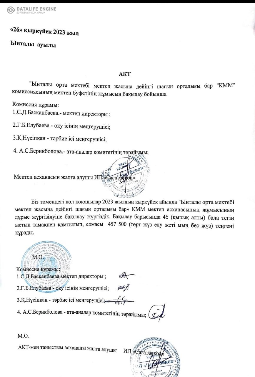 Қыркүйек айындағы тамақтанудан АКТ » Ынталы орта мектебі