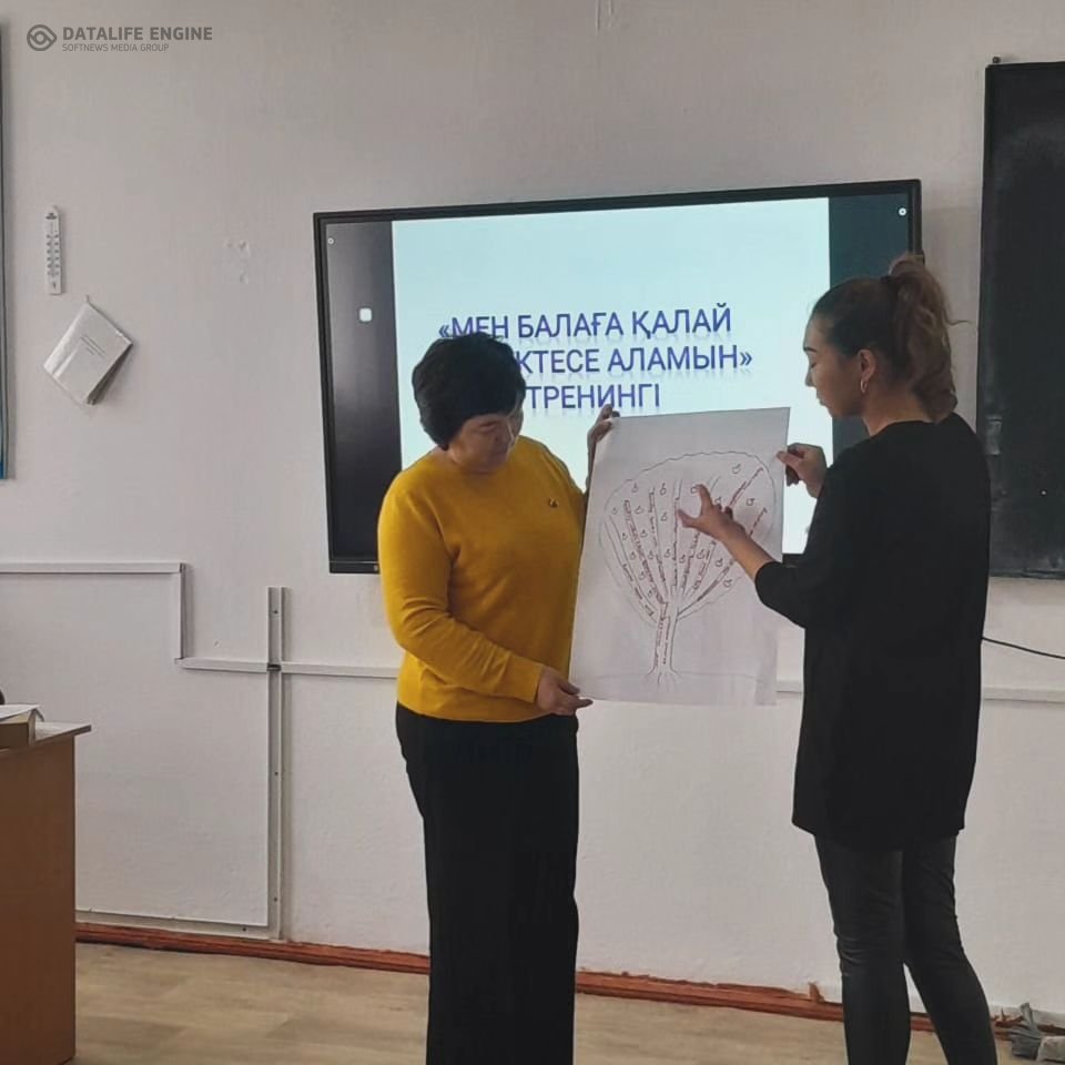 "Ата-аналарды педагогикалық қолдау орталығының" жұмысы негізінде, ата-аналарға "Мен балаға қалай көмектесе аламын" тақырыбында трениг өтті.